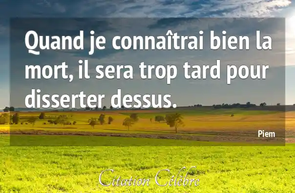 Quand je connaîtrai bien la mort, il sera trop tard pour disserter dessus.