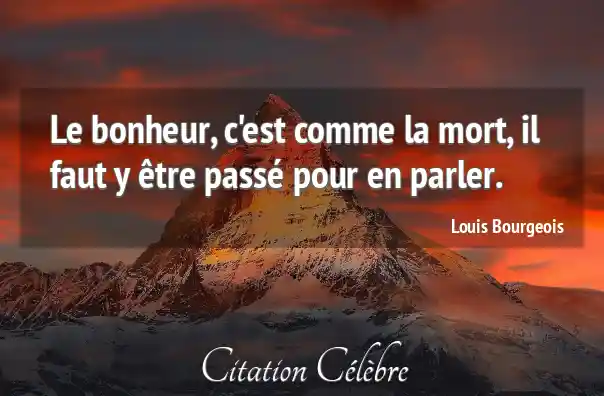 Le bonheur, c'est comme la mort, il faut y être passé pour en parler.