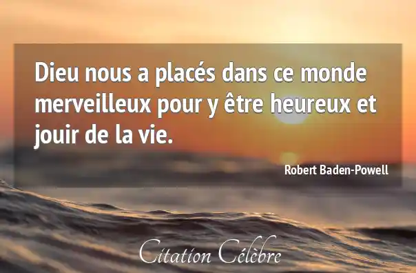 Dieu nous a placés dans ce monde merveilleux pour y être heureux et jouir de la vie.