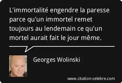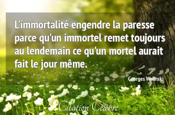 L'immortalité engendre la paresse parce qu'un immortel remet toujours au lendemain ce qu'un mortel aurait fait le jour même.
