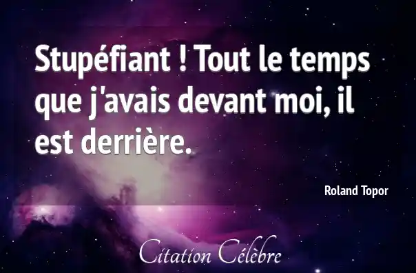Stupéfiant ! Tout le temps que j'avais devant moi, il est derrière.