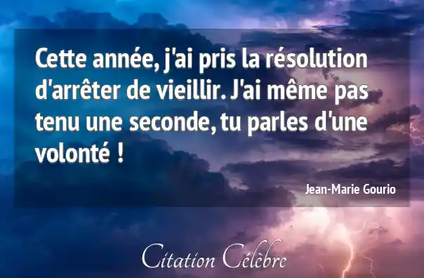 Cette année, j'ai pris la résolution d'arrêter de vieillir. J'ai même pas tenu une seconde, tu parles d'une volonté !