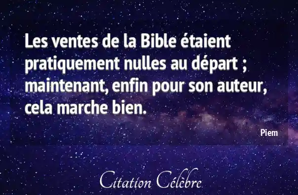 Les ventes de la Bible étaient pratiquement nulles au départ ; maintenant, enfin pour son auteur, cela marche bien.