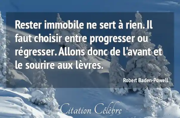 Rester immobile ne sert à rien. Il faut choisir entre progresser ou régresser. Allons donc de l'avant et le sourire aux lèvres.