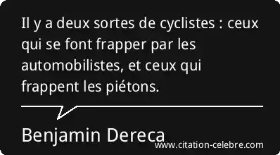 Il y a deux sortes de cyclistes : ceux qui se font frapper par les automobilistes, et ceux qui frappent les piétons.