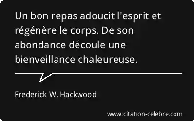 Un bon repas adoucit l'esprit et régénère le corps. De son abondance découle une bienveillance chaleureuse.