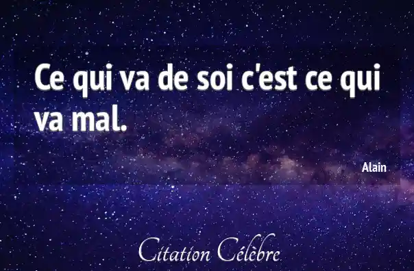 Ce qui va de soi c'est ce qui va mal.
