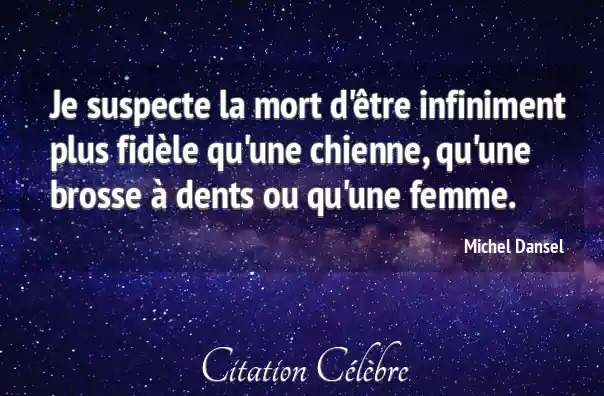 Je suspecte la mort d'être infiniment plus fidèle qu'une chienne, qu'une brosse à dents ou qu'une femme.