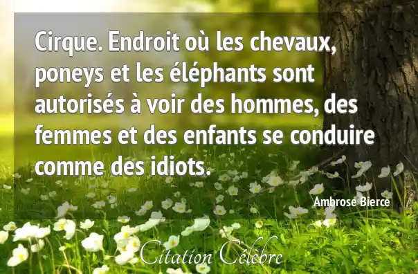 Cirque. Endroit où les chevaux, poneys et les éléphants sont autorisés à voir des hommes, des femmes et des enfants se conduire comme des idiots.