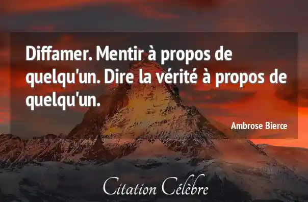 Diffamer. Mentir à propos de quelqu'un. Dire la vérité à propos de quelqu'un.