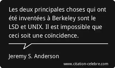 Les deux principales choses qui ont été inventées à Berkeley sont le LSD et UNIX. Il est impossible que ceci soit une coïncidence.
