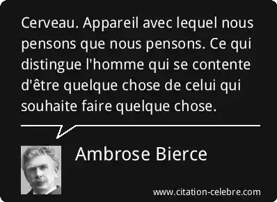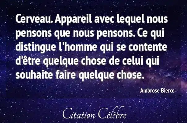 Cerveau. Appareil avec lequel nous pensons que nous pensons. Ce qui distingue l'homme qui se contente d'être quelque chose de celui qui souhaite faire quelque chose.