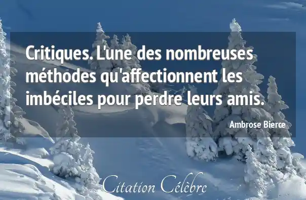 Critiques. L'une des nombreuses méthodes qu'affectionnent les imbéciles pour perdre leurs amis.