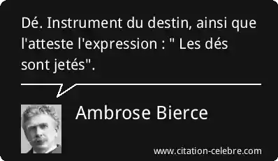 Dé. Instrument du destin, ainsi que l'atteste l'expression : " Les dés sont jetés".