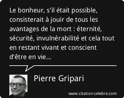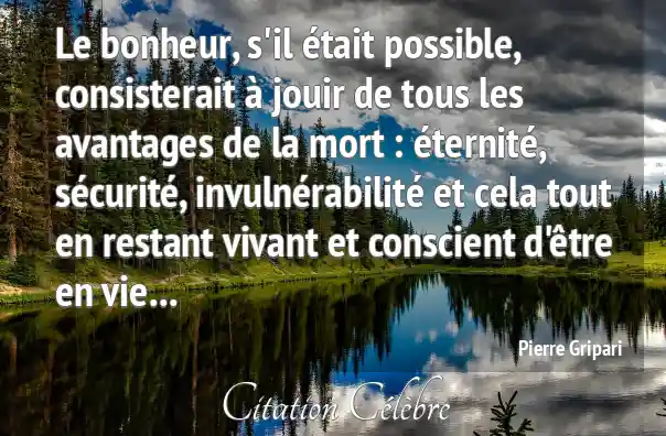 Le bonheur, s'il était possible, consisterait à jouir de tous les avantages de la mort : éternité, sécurité, invulnérabilité et cela tout en restant vivant et conscient d'être en vie...