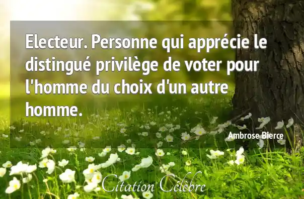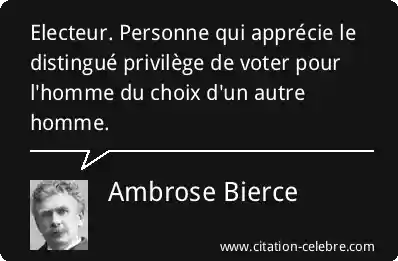 Electeur. Personne qui apprécie le distingué privilège de voter pour l'homme du choix d'un autre homme.
