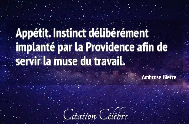 Appétit. Instinct délibérément implanté par la Providence afin de servir la muse du travail.
