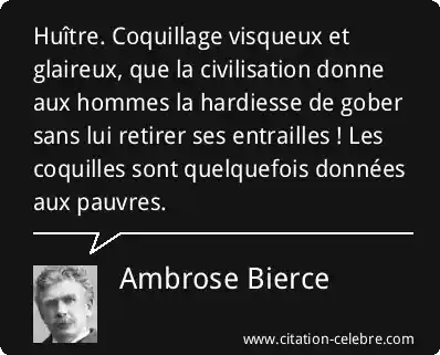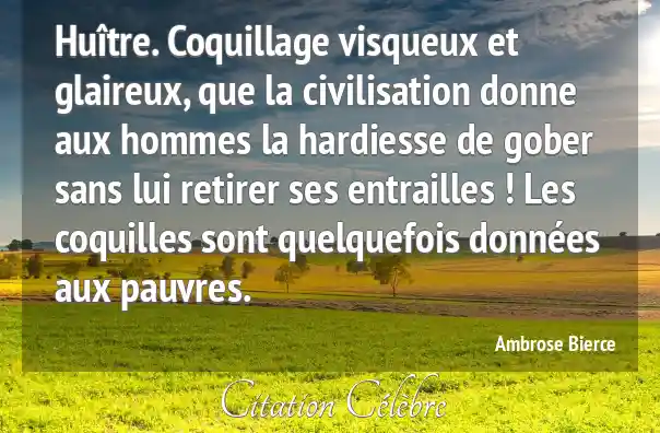 Huître. Coquillage visqueux et glaireux, que la civilisation donne aux hommes la hardiesse de gober sans lui retirer ses entrailles ! Les coquilles sont quelquefois données aux pauvres.