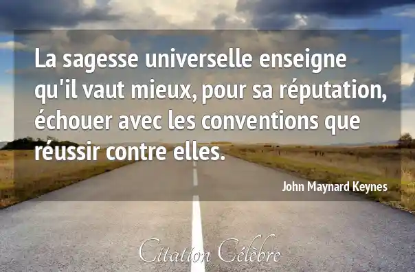La sagesse universelle enseigne qu'il vaut mieux, pour sa réputation, échouer avec les conventions que réussir contre elles.