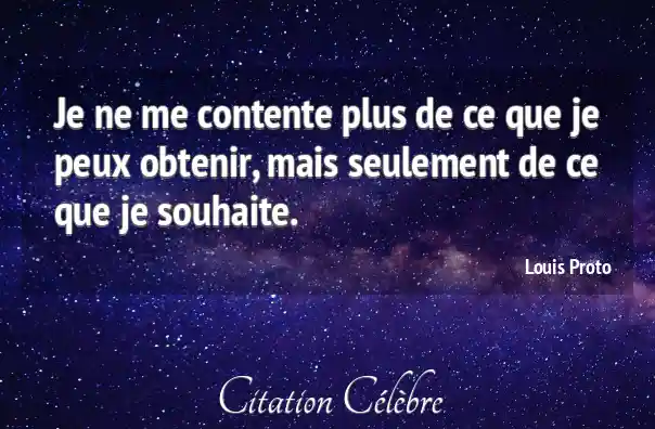 Je ne me contente plus de ce que je peux obtenir, mais seulement de ce que je souhaite.