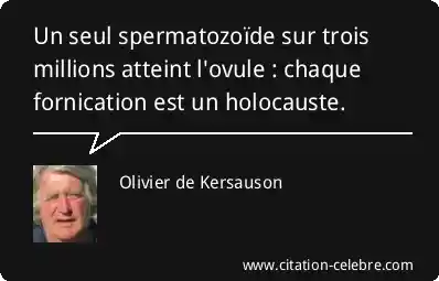 Un seul spermatozoïde sur trois millions atteint l'ovule : chaque fornication est un holocauste.