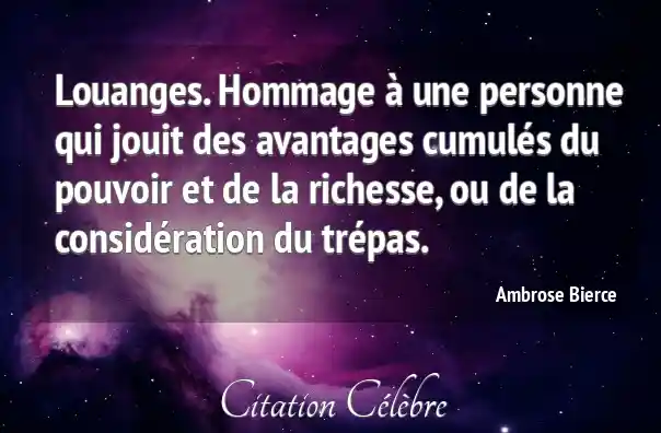 Louanges. Hommage à une personne qui jouit des avantages cumulés du pouvoir et de la richesse, ou de la considération du trépas.