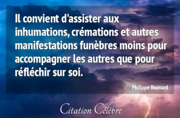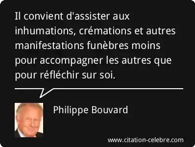 Il convient d'assister aux inhumations, crémations et autres manifestations funèbres moins pour accompagner les autres que pour réfléchir sur soi.