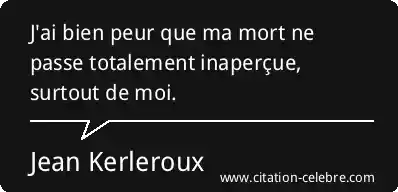 J'ai bien peur que ma mort ne passe totalement inaperçue, surtout de moi.