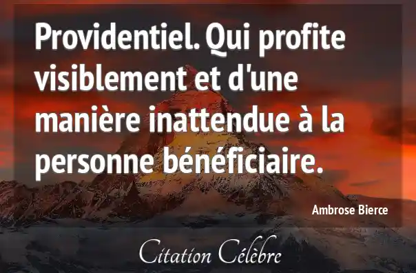 Providentiel. Qui profite visiblement et d'une manière inattendue à la personne bénéficiaire.