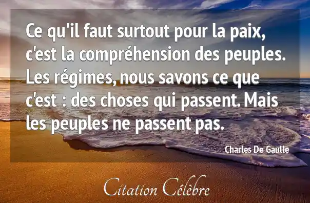 Ce qu'il faut surtout pour la paix, c'est la compréhension des peuples. Les régimes, nous savons ce que c'est : des choses qui passent. Mais les peuples ne passent pas.