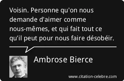 Voisin. Personne qu'on nous demande d'aimer comme nous-mêmes, et qui fait tout ce qu'il peut pour nous faire désobéir.