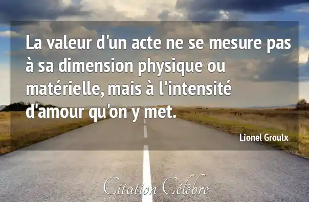 La valeur d'un acte ne se mesure pas à sa dimension physique ou matérielle, mais à l'intensité d'amour qu'on y met.