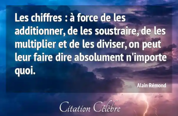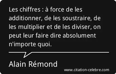 Les chiffres : à force de les additionner, de les soustraire, de les multiplier et de les diviser, on peut leur faire dire absolument n'importe quoi.