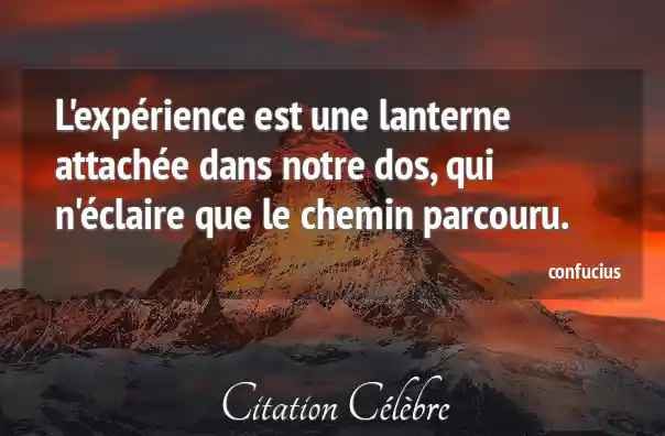 L'expérience est une lanterne attachée dans notre dos, qui n'éclaire que le chemin parcouru.