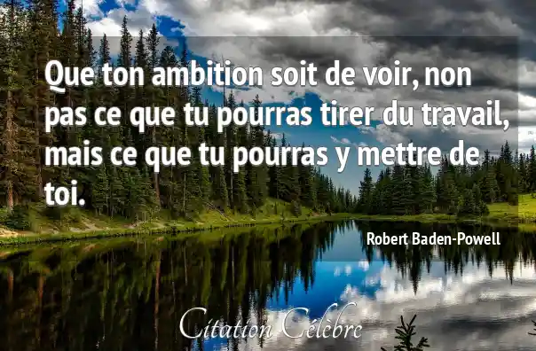 Que ton ambition soit de voir, non pas ce que tu pourras tirer du travail, mais ce que tu pourras y mettre de toi.