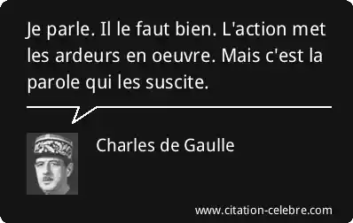 Je parle. Il le faut bien. L'action met les ardeurs en oeuvre. Mais c'est la parole qui les suscite.