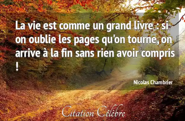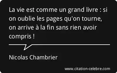 La vie est comme un grand livre : si on oublie les pages qu'on tourne, on arrive à la fin sans rien avoir compris !