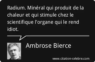 Radium. Minéral qui produit de la chaleur et qui stimule chez le scientifique l'organe qui le rend idiot.