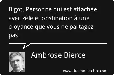 Bigot. Personne qui est attachée avec zèle et obstination à une croyance que vous ne partagez pas.