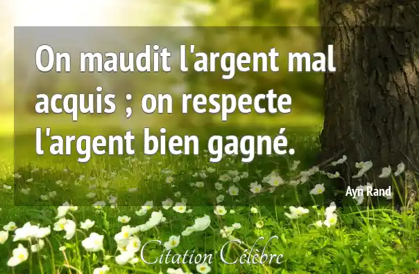 On maudit l'argent mal acquis ; on respecte l'argent bien gagné.