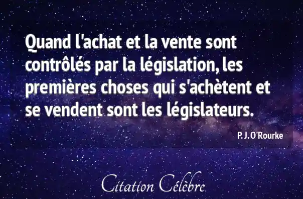 Quand l'achat et la vente sont contrôlés par la législation, les premières choses qui s'achètent et se vendent sont les législateurs.
