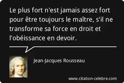 Le plus fort n'est jamais assez fort pour être toujours le maître, s'il ne transforme sa force en droit et l'obéissance en devoir.