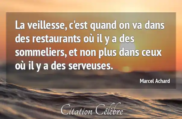 La veillesse, c'est quand on va dans des restaurants où il y a des sommeliers, et non plus dans ceux où il y a des serveuses.