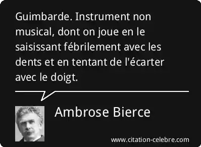 Guimbarde. Instrument non musical, dont on joue en le saisissant fébrilement avec les dents et en tentant de l'écarter avec le doigt.