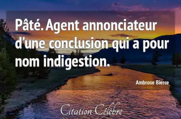 Pâté. Agent annonciateur d'une conclusion qui a pour nom indigestion.