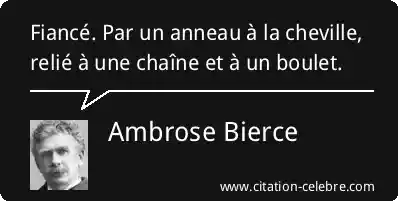 Fiancé. Par un anneau à la cheville, relié à une chaîne et à un boulet.