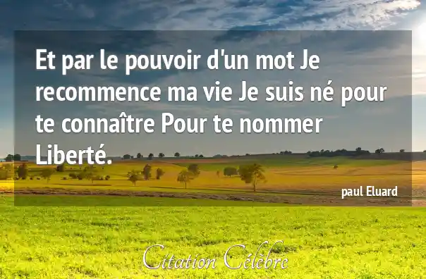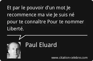 Et par le pouvoir d'un mot Je recommence ma vie Je suis né pour te connaître Pour te nommer Liberté.