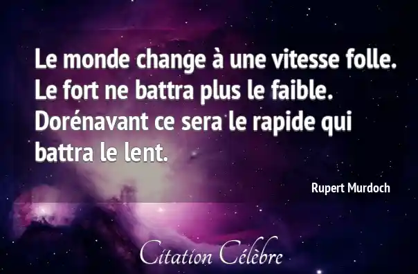 Le monde change à une vitesse folle. Le fort ne battra plus le faible. Dorénavant ce sera le rapide qui battra le lent.