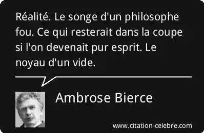 Réalité. Le songe d'un philosophe fou. Ce qui resterait dans la coupe si l'on devenait pur esprit. Le noyau d'un vide.