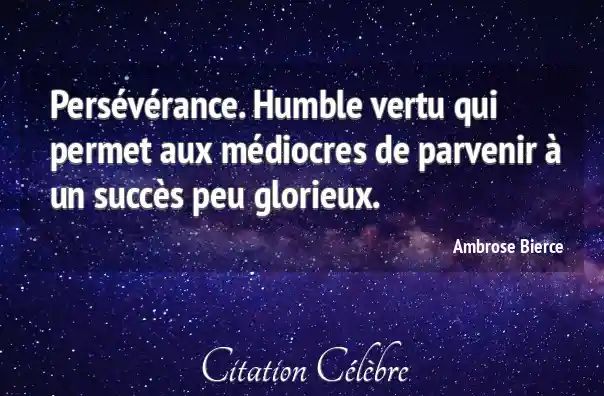 Persévérance. Humble vertu qui permet aux médiocres de parvenir à un succès peu glorieux.